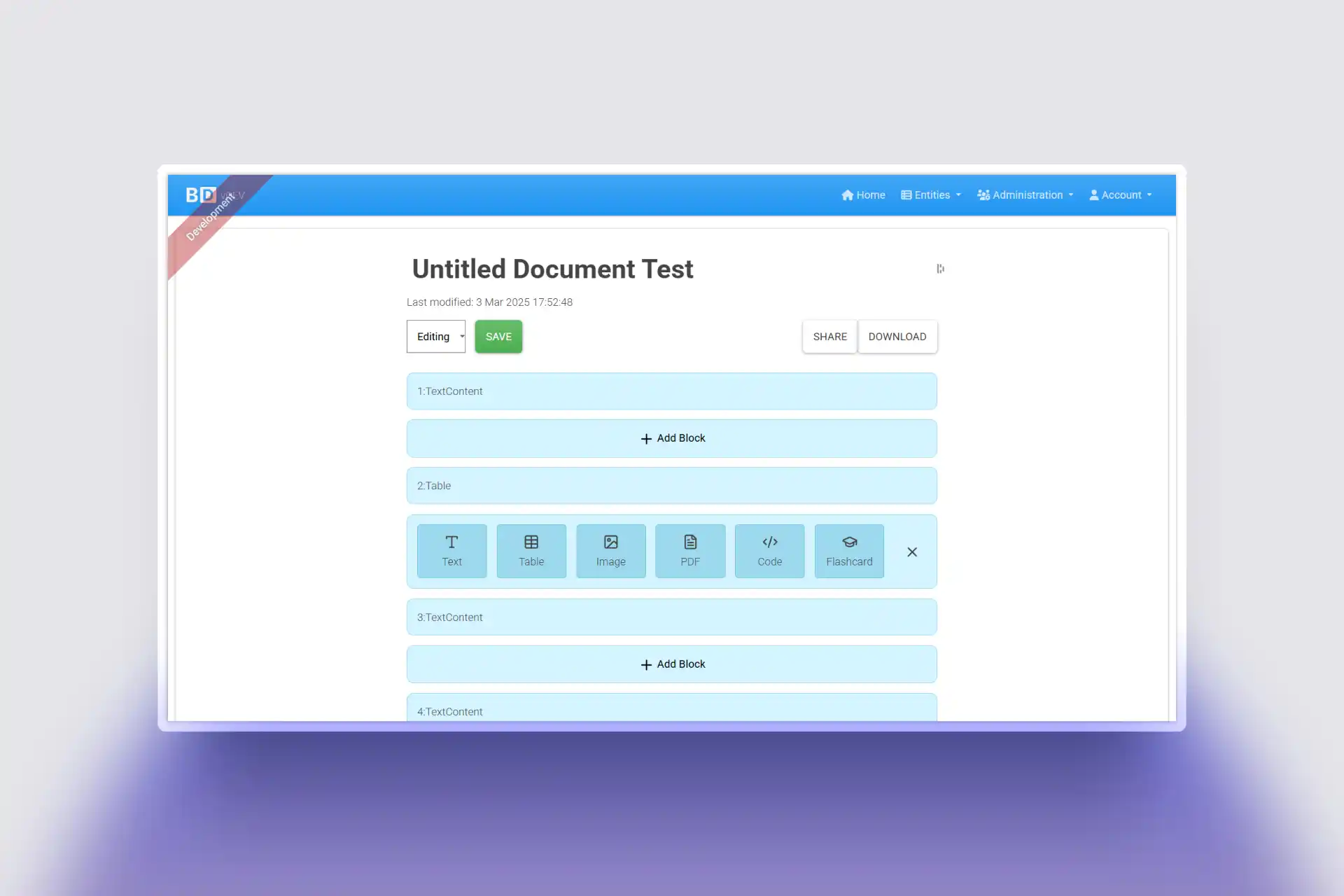 Document CRUD Operations: I successfully implemented full create and delete functionality for documents to allow users to create new blank documents and delete them, updating the folder UI in real time as new documents are made. Documents are by default are named "Untitled Document" but can be done within documents by clicking on the title itself. After the user unfocuses from it, the result is automatically sent to the server for updating. For blocks themself, a manual save button was implemented in order to put less strain on the server, calling the blocks that have been modified to update its data.